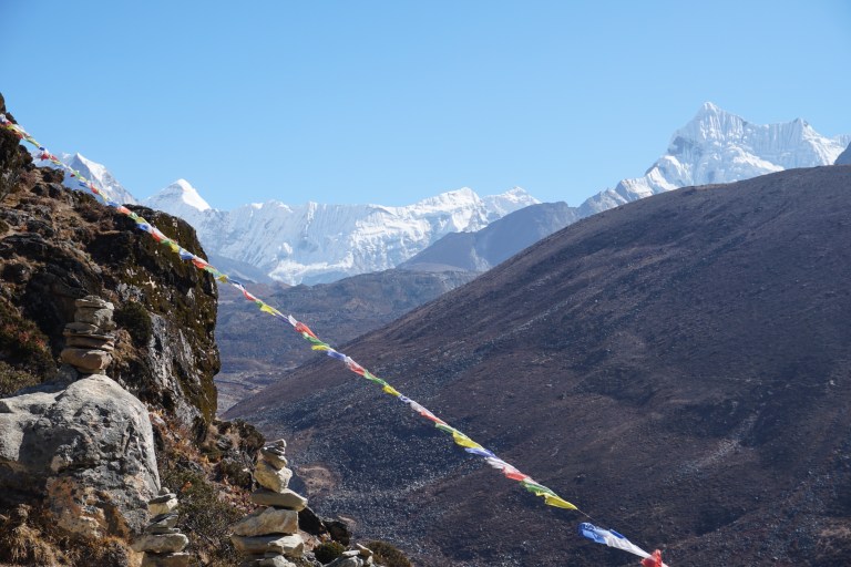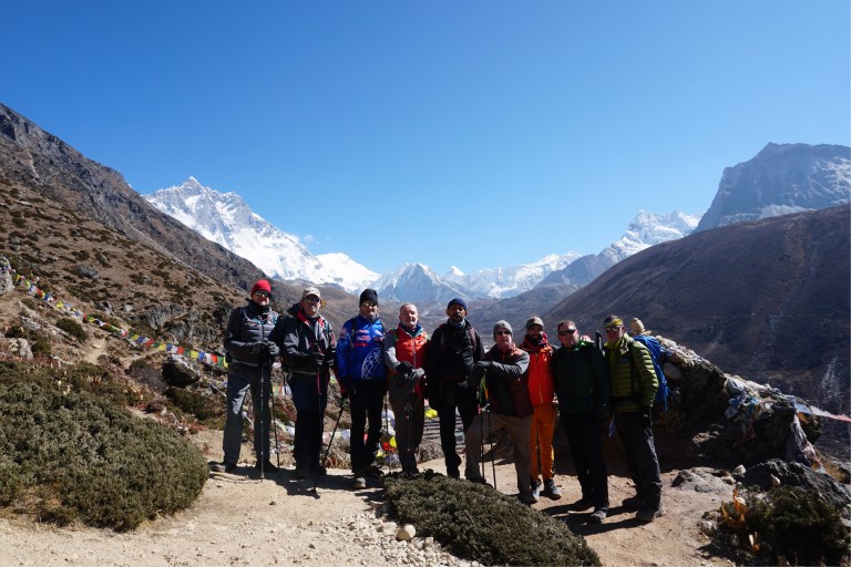 The summit team of Cayman Turtle Trekkers set off for Base Camp. The trail wound its way up the banks of the Imja Khola river with Lhotse on one side and Ama Dablam on the other side of the valley, but all pointing to Island Peak, which as the name suggests stands alone like an island between these mountain ranges.